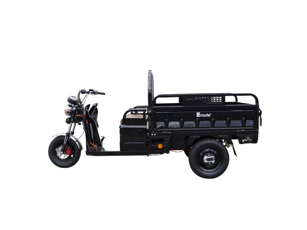 Das leistungsstarke Eroute Cargo T425 Elektro-Lastendreirad mit großem Laderaum und beeindruckender Leistung. Umweltfreundlich dank langlebiger Batterien. Ideal für den Transport von Waren und Gütern.